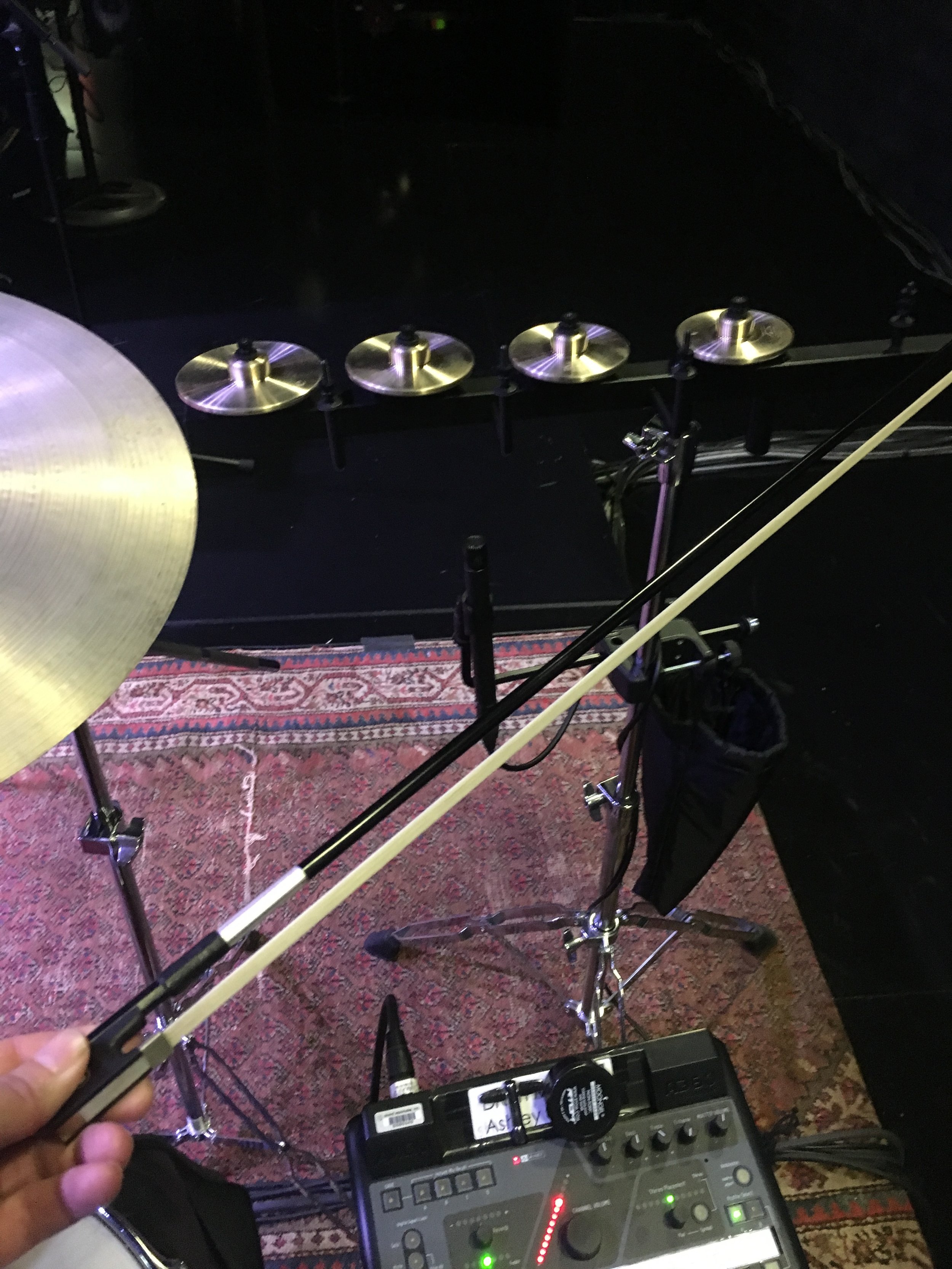 I finally get to put those contemporary percussion ensemble skills to use during a song that features bowed crotales. It’s a nice effect for the piece and serves as a few meditative minutes for me to re-center and think about what’s coming up next.